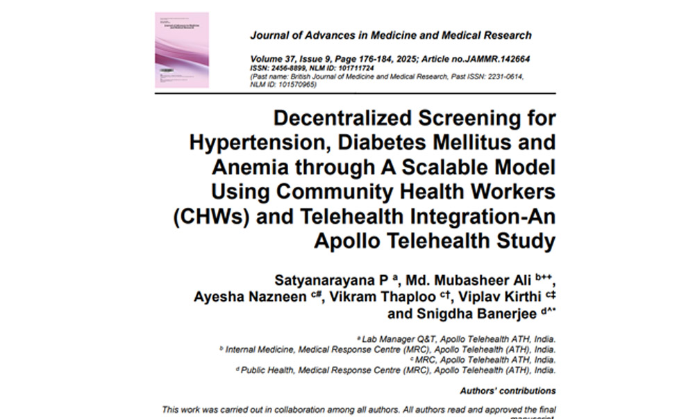 Decentralized Screening for Hypertension, Diabetes Mellitus and Anemia through A Scalable Model Using Community Health Workers (CHWs) and Telehealth Integration-An Apollo Telehealth Study